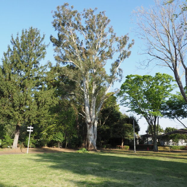 ユーカリやドイツトウヒ、 スズカケノキなど個性的な大木に囲まれた芝生の広場です。