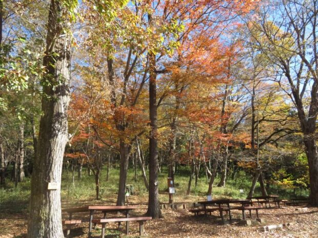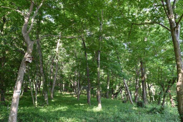 四季折々の姿を楽しめる雑木林内のベンチで一休み。