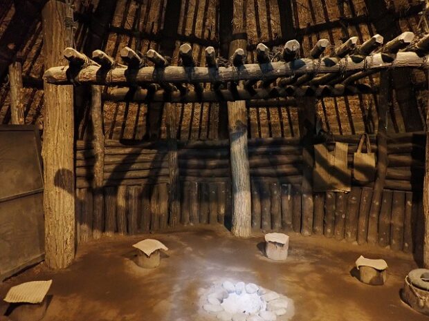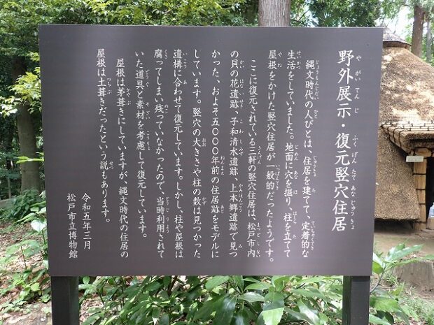 松戸市立博物館の野外展示として、 縄文時代の竪穴住居が3棟復元されています。 普段はそのうち1棟を開放していて、 住居内を自由に見学できるようになっています。