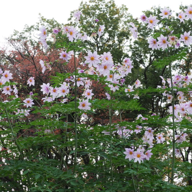 晩秋(11月中旬から12月はじめ)にたくさんの皇帝ダリアが咲きます。