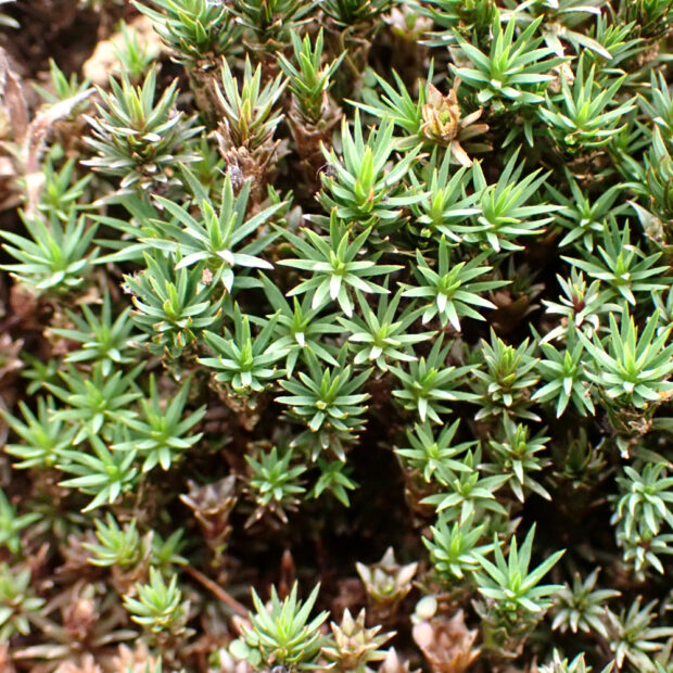 コケや地衣類は遷移初期のパイオニア種であり、 貧栄養で乾燥に耐え生育することで土壌を形成する。