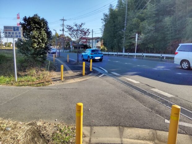 道の駅しょうなん方面からの景色です。 カーブミラーの位置で右折です。