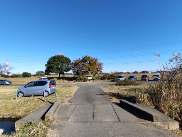 駐車場の入り口の景色です。 左右それぞれに駐車スペースがあります。