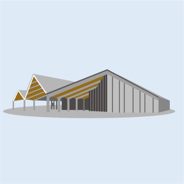 〈点と点をつなぐ〉役割を 担いたいという願いから。 また、 建物の大きな三角屋根を由来にして『てんと』という名前になりました。