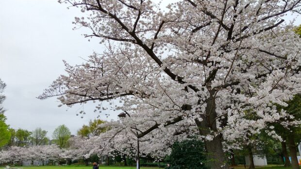 時計塔のまわりをぐるりと取り囲む桜の並木。 花が満開の春はとても見ごたえがあります。