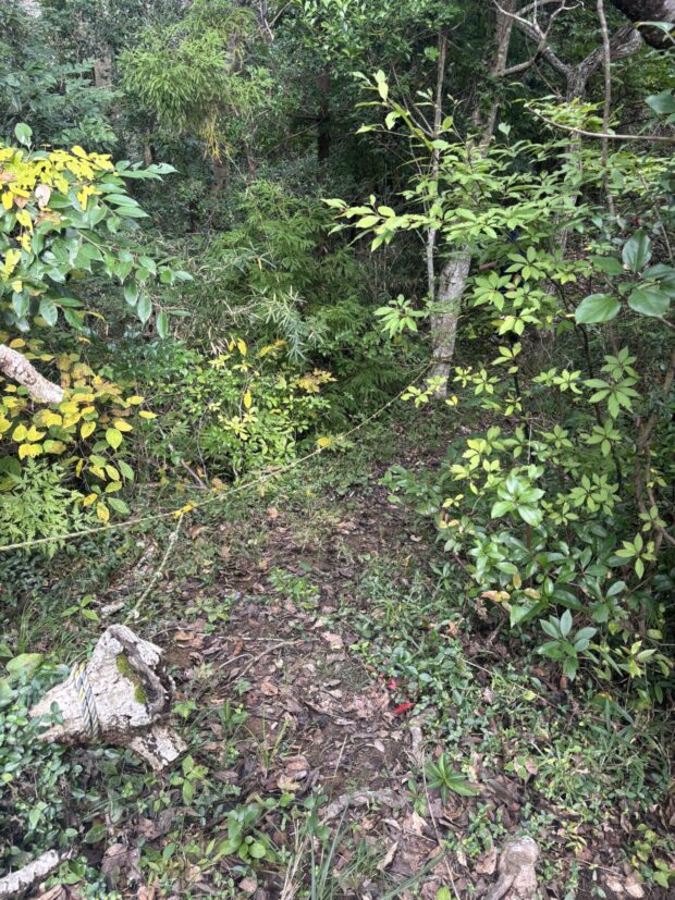 急な斜面のためロープをもって移動しましょう。
