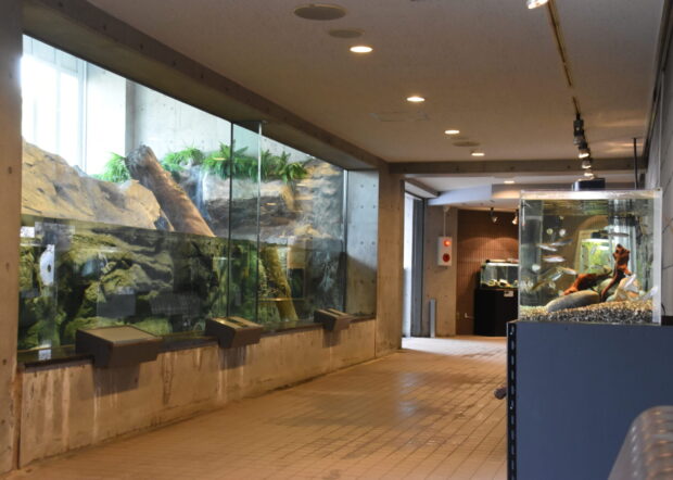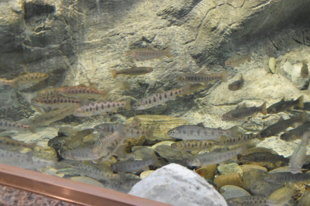 荒川上流域の渓谷を再現したイワナやヤマメの大水槽ほか、 ウグイ、 アブラハヤなどが観察できます。