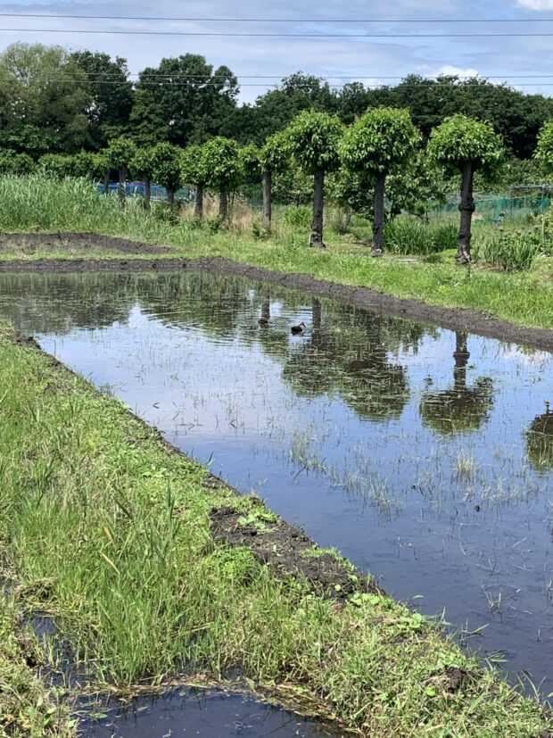来週は代掻きです。 田んぼに水が入ってカルガモも遊びに来ました。