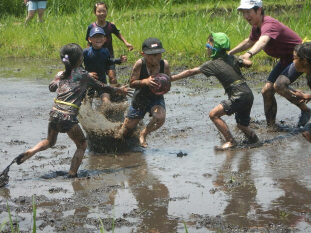 今日は田んぼでどろんこ遊びをしました。 最初は恐々でしたが最後はみんな楽しく遊びました。