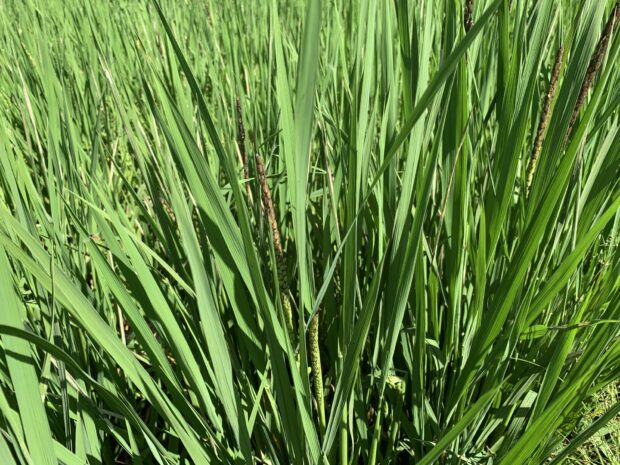 いよいよ来週は黒米、 赤米、 もち米の稲刈りです。 約一か月育成期間が長い緑米の穂がやっと出てきました。