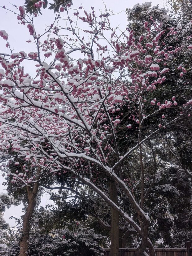 梅の木に雪が積もって綺麗でした!